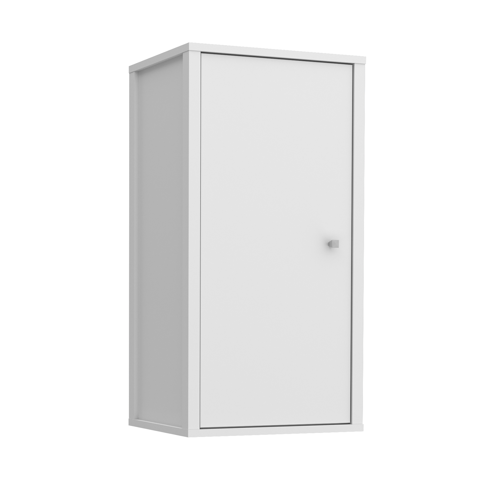 Schicker und moderner Hängeschrank in Weiß, der durch sein schlichtes Design punktet und somit in jedes Badezimmer passt. Hinter einer Tür können Sie reichlich Utensilien oder Badtextilien verstauen. Die Griffe aus Kunststoff setzen einen schicken optischen Akzent.