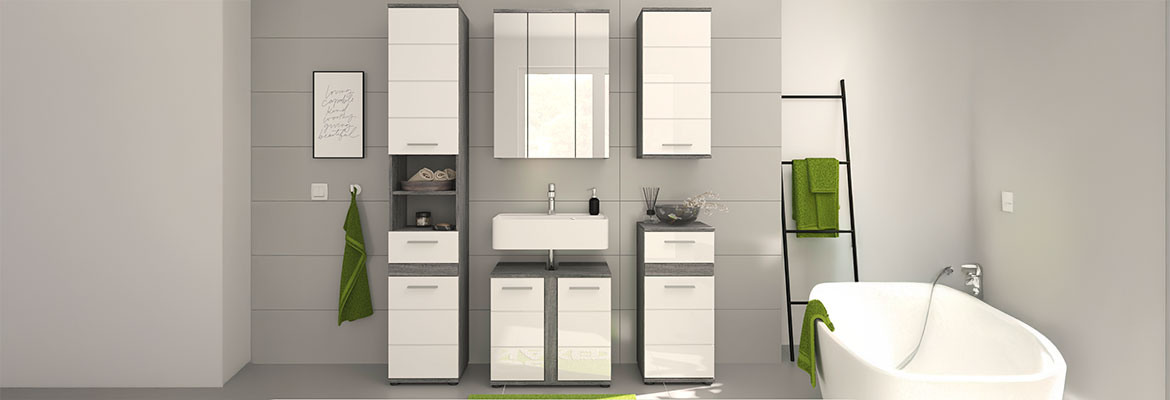 - Badprogramm Weiß Eiche - Platingrau Eiche