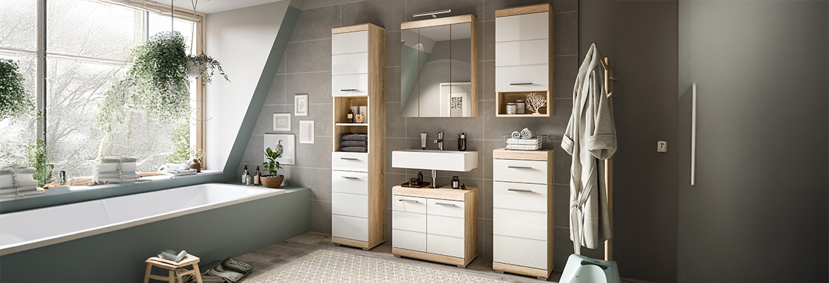 - Badprogramm Weiß Eiche - Platingrau Eiche