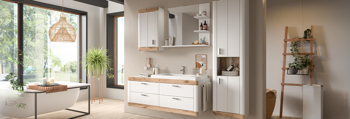 - Badprogramm Weiß Eiche - Platingrau Eiche