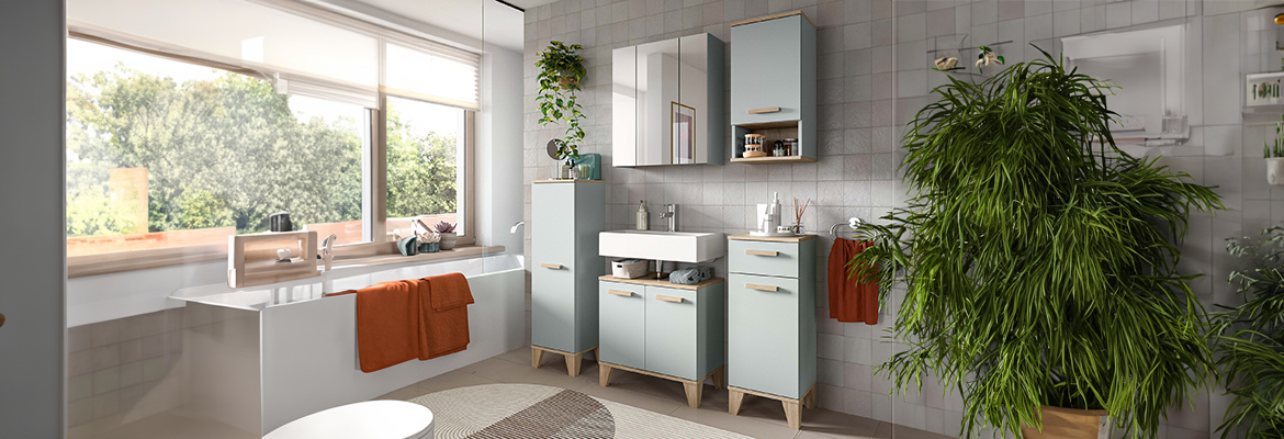 - Badezimmer pistazie - mattweiß - anthrazit - Artisan Eiche