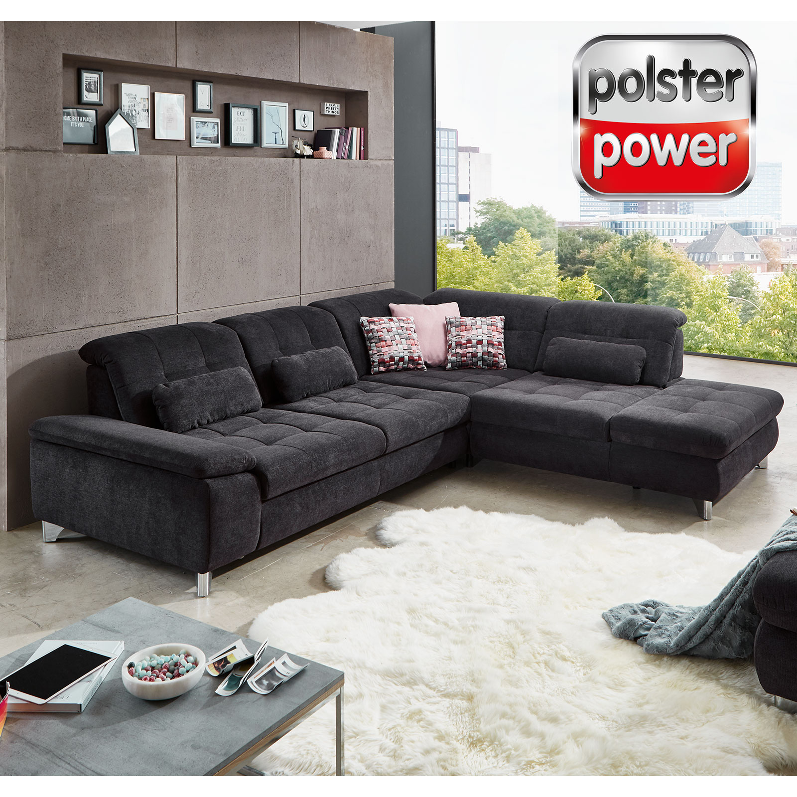 Eine Wohnlandschaft die Sie begeistern wird. In herrlichem Schwarz präsentiert sie sich und kann somit in viele verschiedenste Wohnstile integreiert werden. Sie haben besonders viel Platz für Freunde und Familie und sitzen komfortabel. Beide Elemente sind mit einer Sitztiefenverstellung ausgestattet, sodass Sie Ihren Sitz ganz nach Ihren individuellen Bedürfnissen einstellen können.