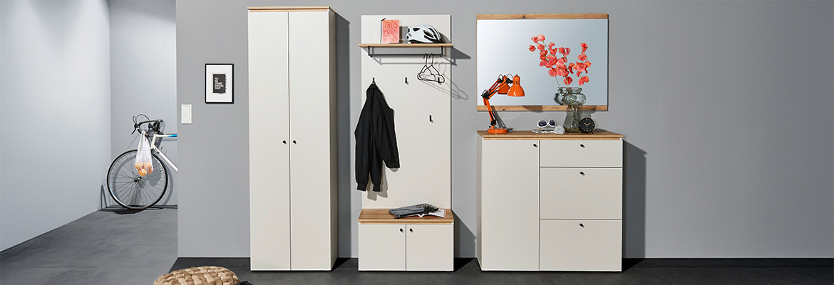 - Garderobe Weiß Eiche - Platingrau Eiche