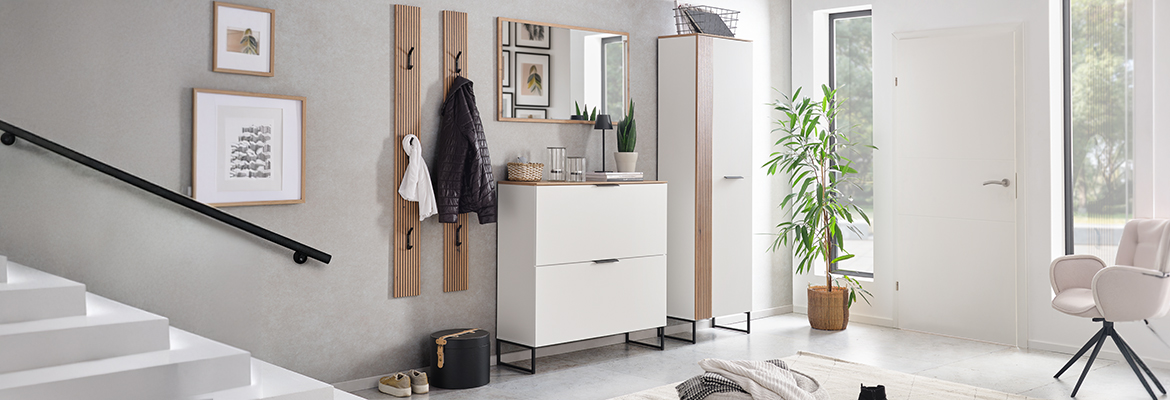 - Garderobe weiß Hochglanz - Wotan Eiche