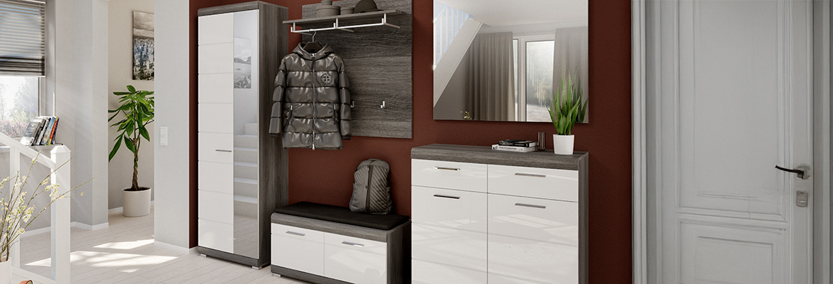 - Garderobe weiß Hochglanz - Matera dunkel