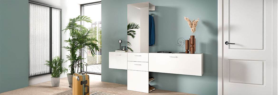 - Garderobe weiß Hochglanz - Wotan Eiche