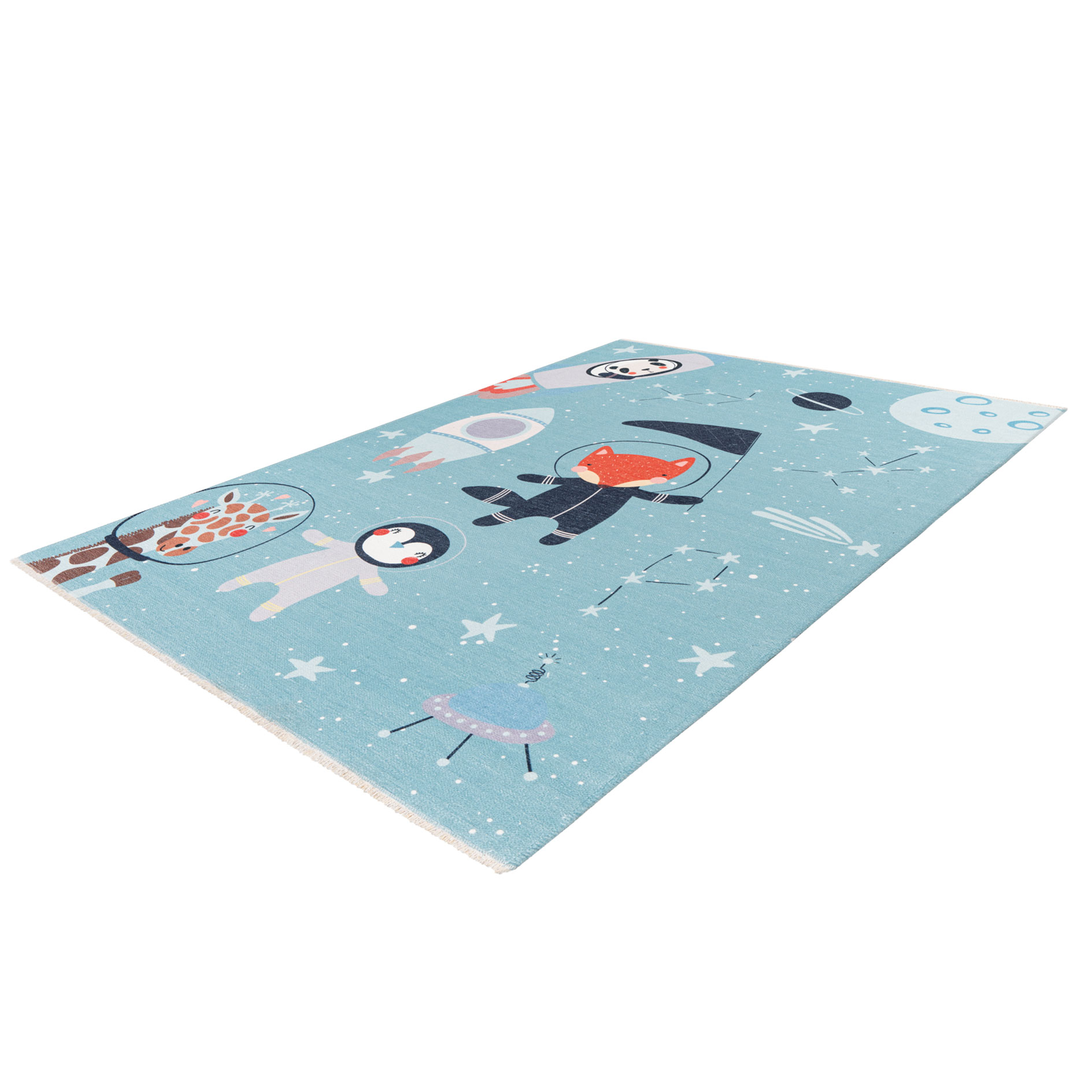 Dieser Kinderteppich lädt kleine Abenteurer auf eine fantastische Reise zu den Sternen ein! Das verspielte Design mit niedlichen Tieren in einem strahlend blauen Weltall-Hintergrund regt die Fantasie an und sorgt für eine fröhliche Atmosphäre im Kinderzimmer. Mit einer Florhöhe von ca. 6 mm ist er angenehm flach, pflegeleicht und maschinenwaschbar bei 30°C. Zudem ist er für Fußbodenheizungen geeignet, sodass er stets für wohlige Wärme sorgt. Mit den Maßen von ca. 115 x 170 cm passt er perfekt in jedes Kinderzimmer und wird garantiert zum neuen Lieblingsplatz fürs Spielen und Träumen!
