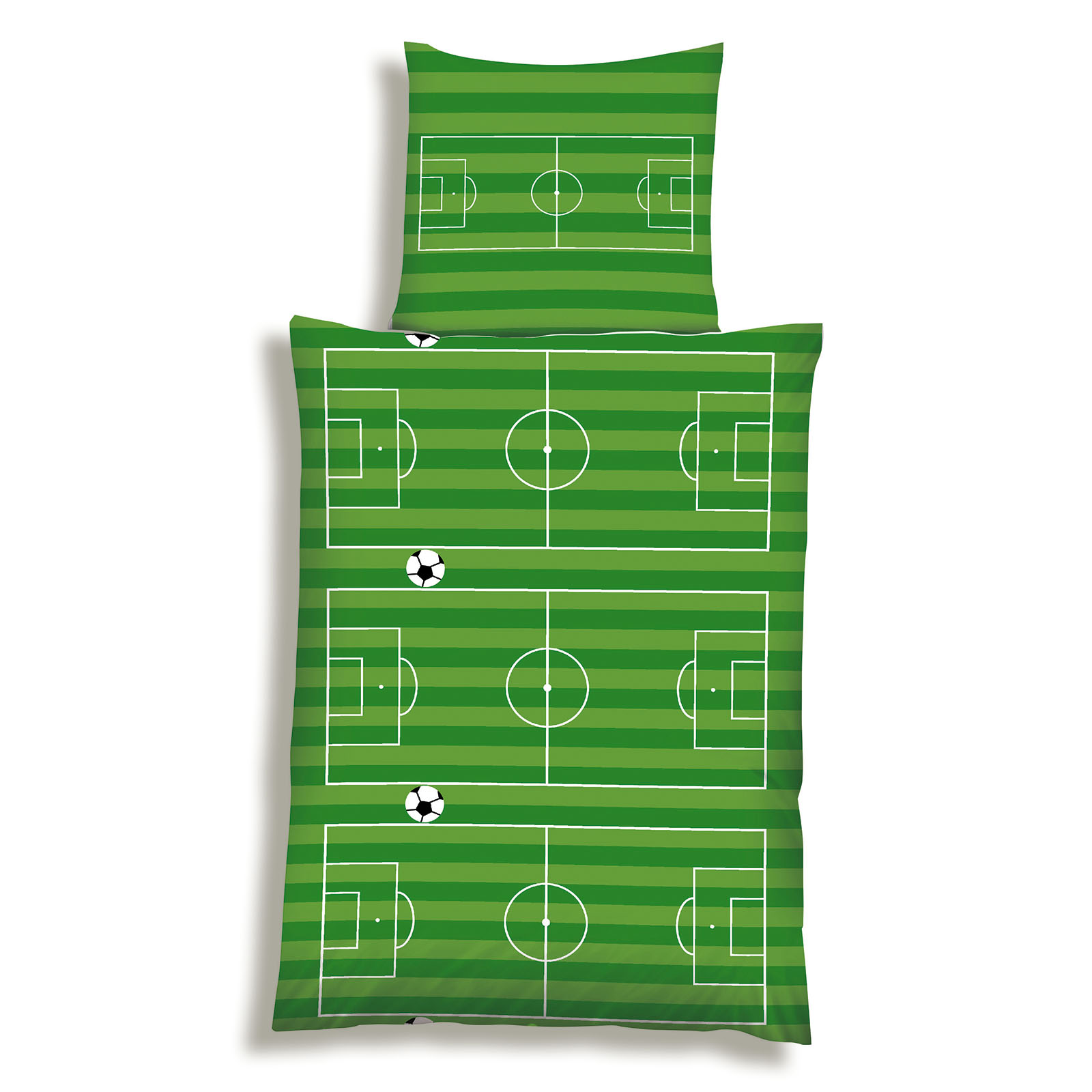 Für alle Fußball-Begeisterten kommt diese Microfaser-Bettwäsche gerade richtig! Wie es sich gehört in grüner Farbgebung und mit weißen Spielfeldmarkierungen. Ein praktischer Reißverschluss vereinfacht und beschleunigt das Ab- und Beziehen dieser tollen Bettwäsche.