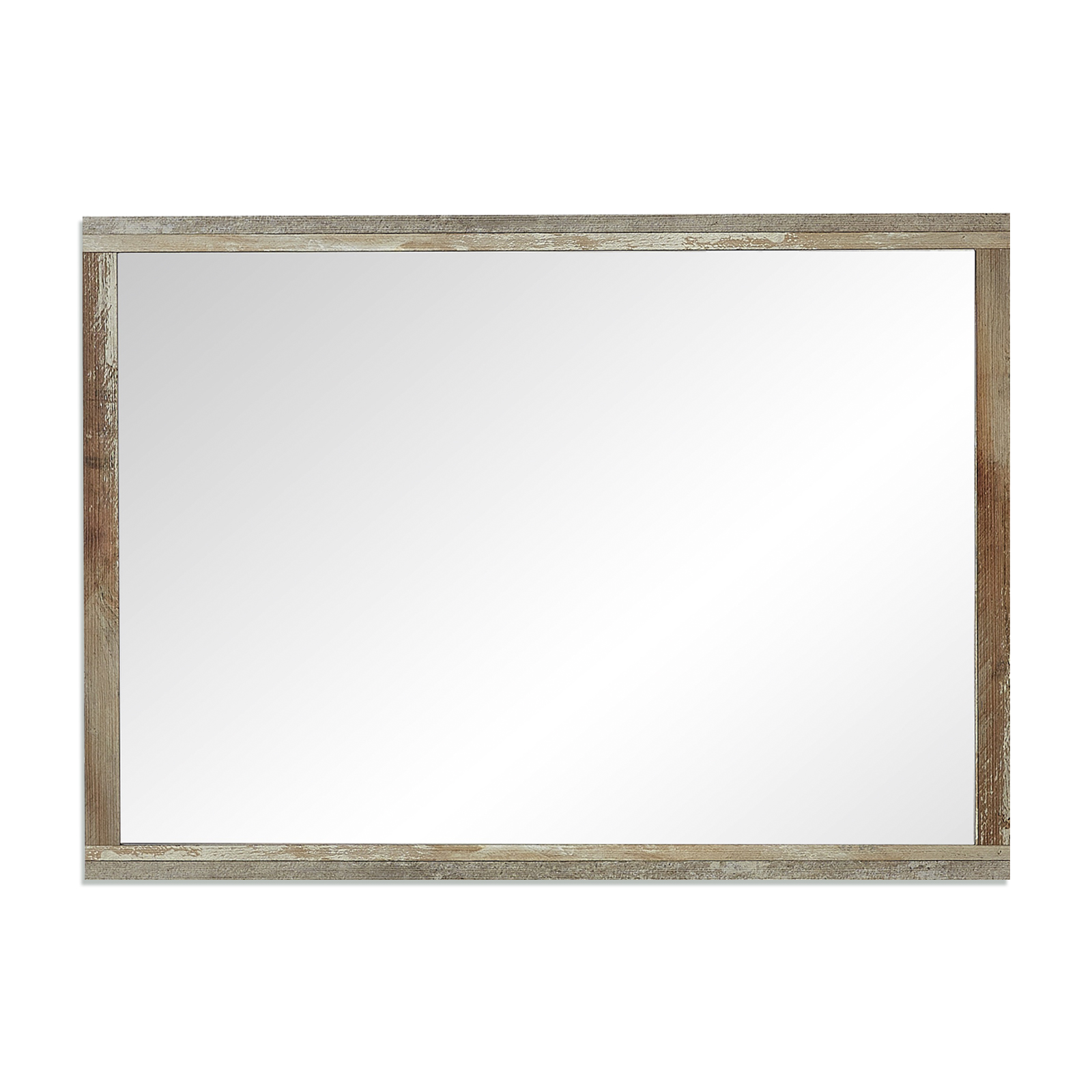 Der Spiegel ist mit seiner Größe von etwa 97 x 70 cm großzügig gestaltet. Er ist auf einer Platte aus Holzwerkstoff angebracht, welche in Driftwood Nachbildung foliert ist. Ein absoluter Eyecatcher!