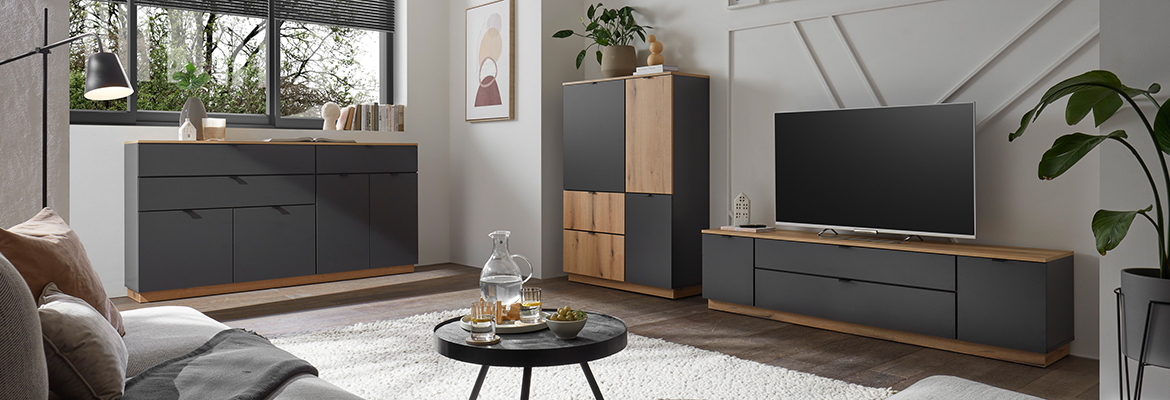 - Wohnzimmer Matera dunkel - Coast Evoke Eiche